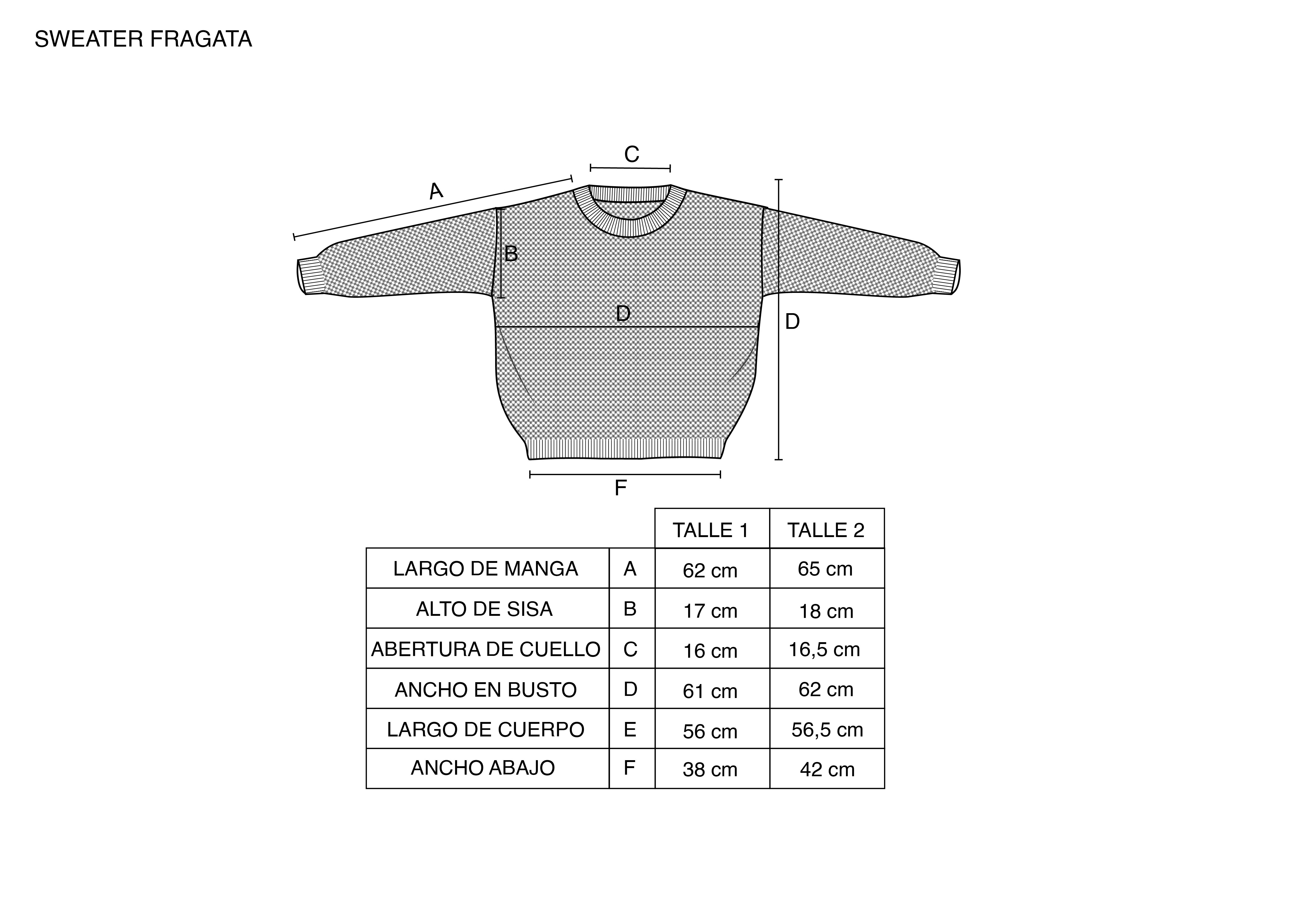 Compará tus medidas con las de la tabla. Todas tus medidas tienen que entrar en uno de los talles. Tené en cuenta que los tejidos de punto estiran y se acomodan al cuerpo.
