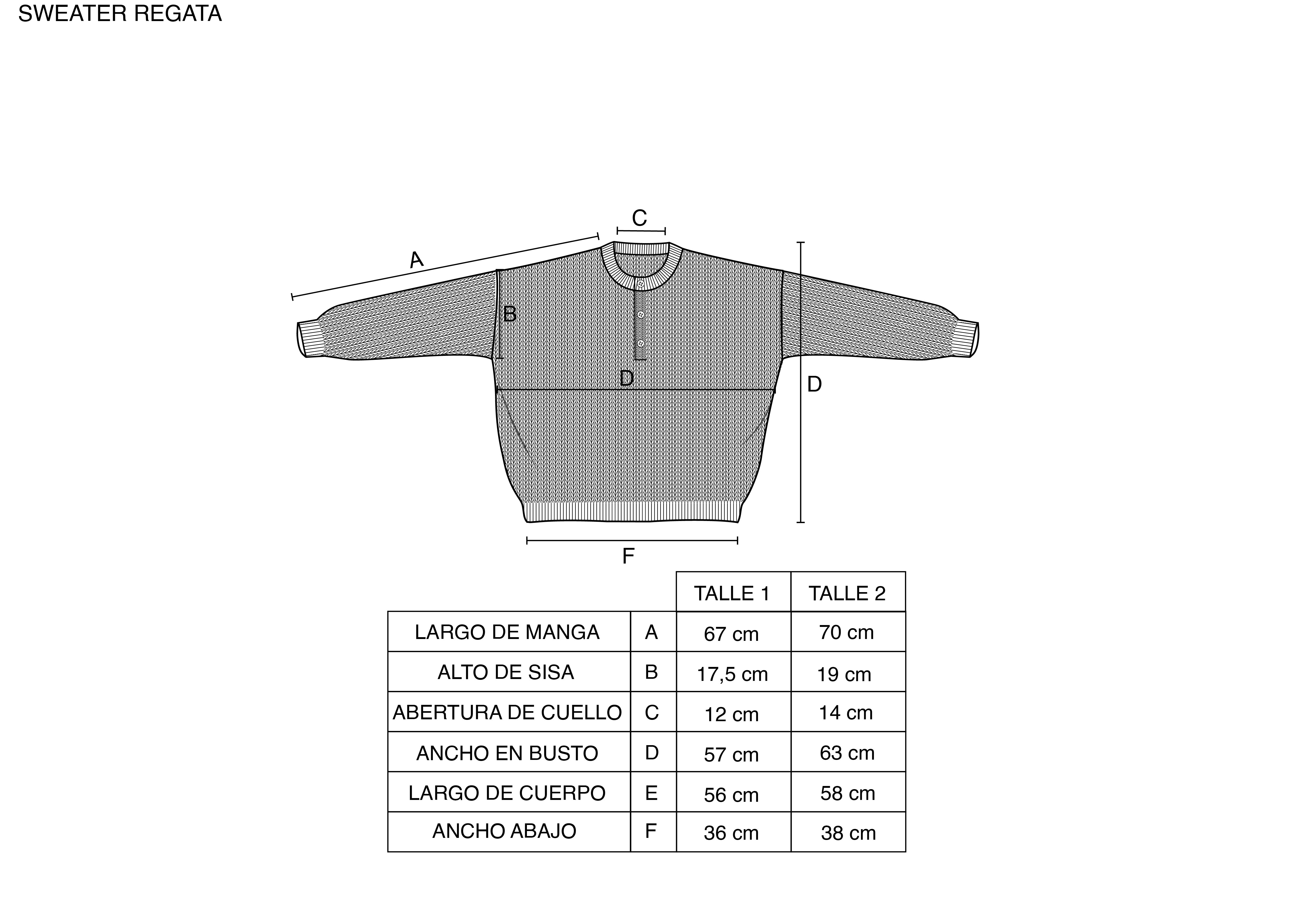 Compará tus medidas con las de la tabla. Todas tus medidas tienen que entrar en uno de los talles. Tené en cuenta que los tejidos de punto estiran y se acomodan al cuerpo.